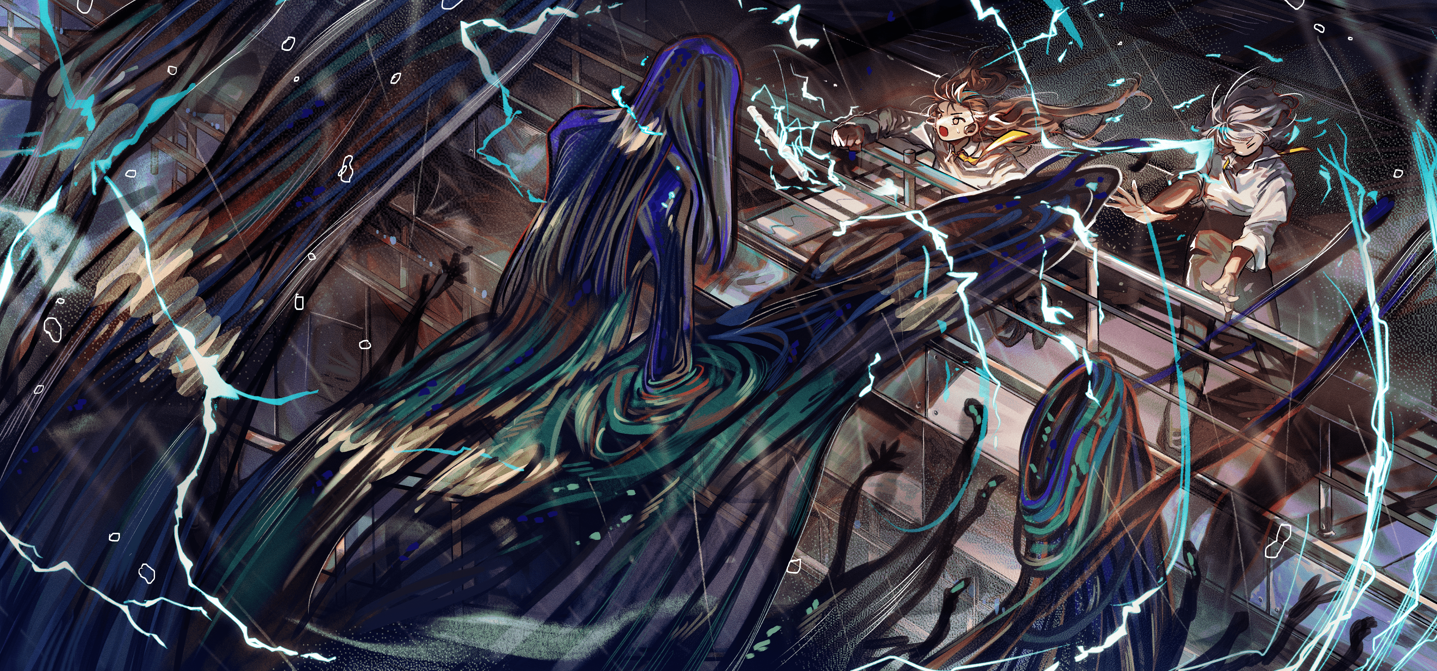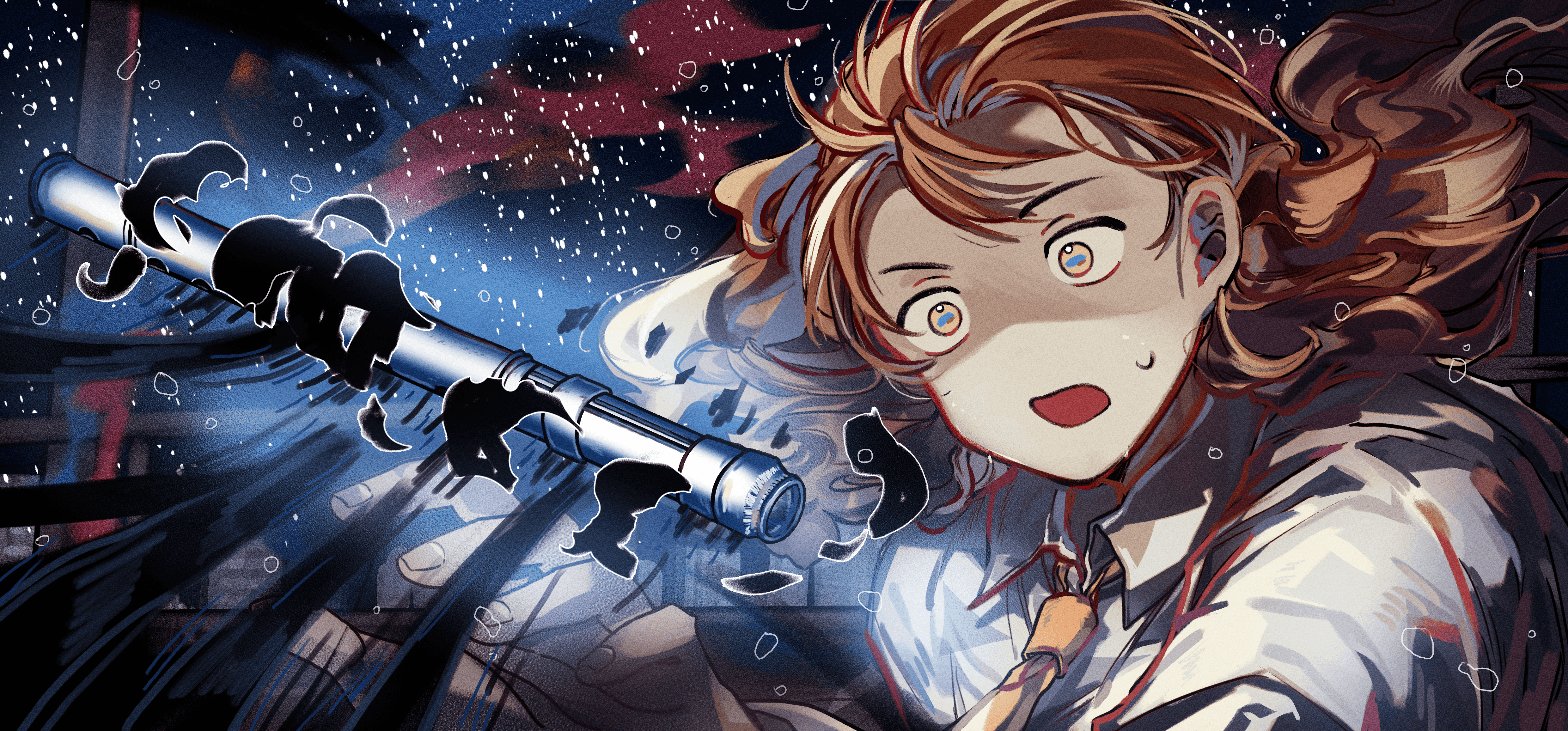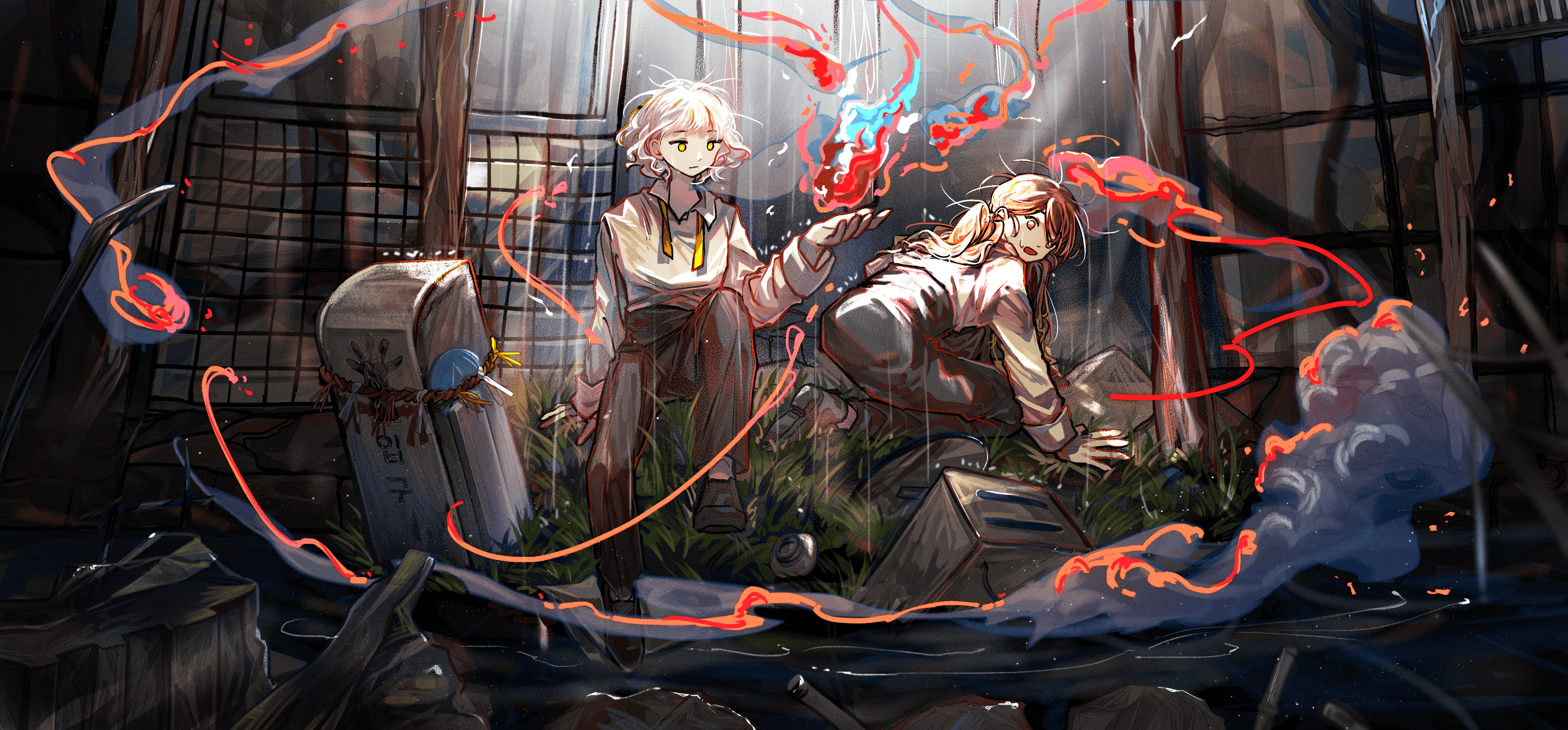 저승을 탈출해 어둠 속으로 숨어든 혼들을 찾아 떠나는 저승사자 이야기를 그린 컨셉 일러스트. 위기가 닥쳐도 맞서 싸우는 주인공을 통해 용기의 중요성을 전달하는 작품을 기획하게 되었다.